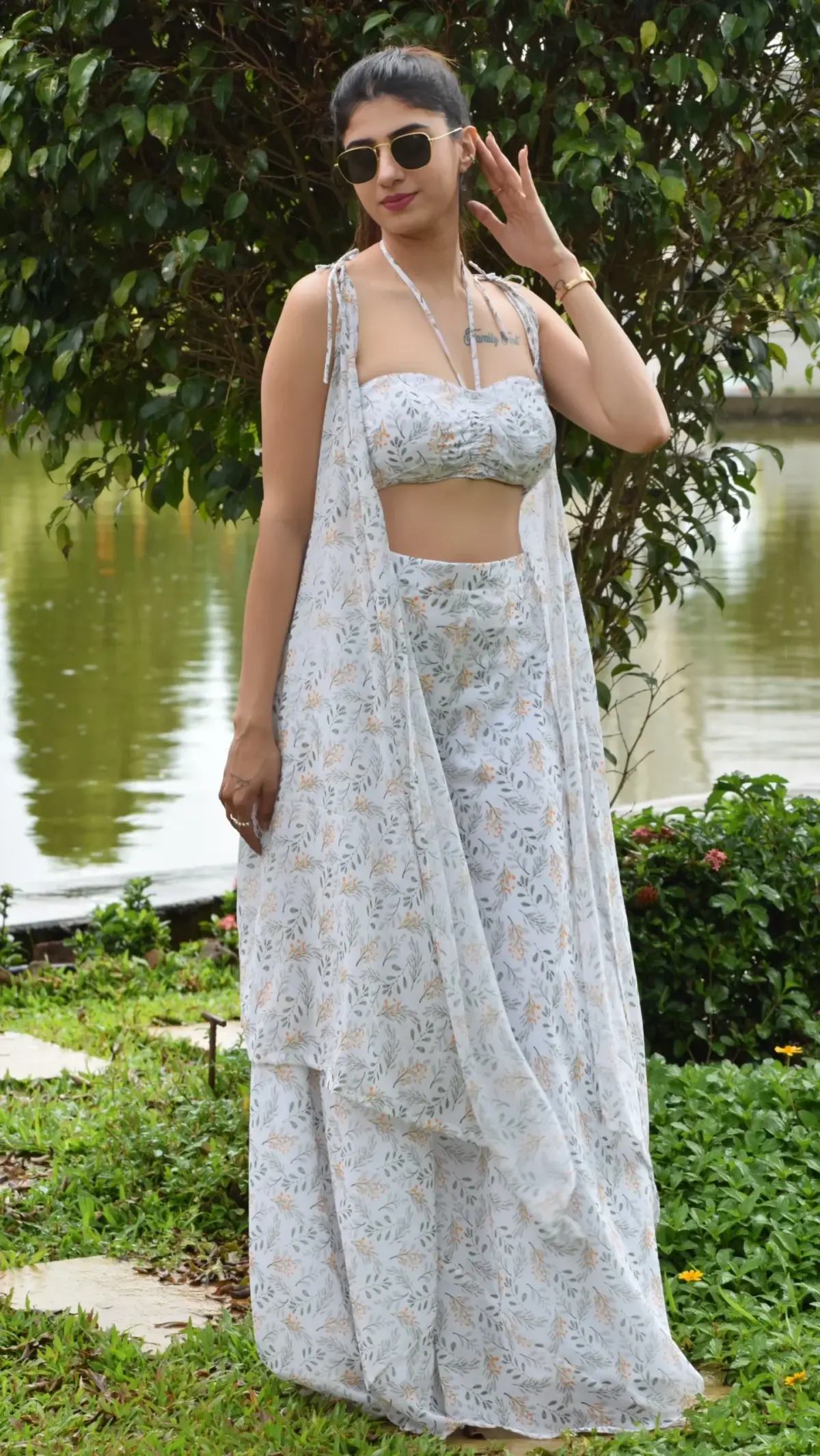 Introducing our exquisite 3-Piece Georgette Dress Set, a versatile ensemble that combines fashion, comfort, and elegance in one stunning package. This set includes a pair of flared pants, a flowy shrug, and a stylish crop top, offering endless possibilities for creating unique and sophisticated looks.